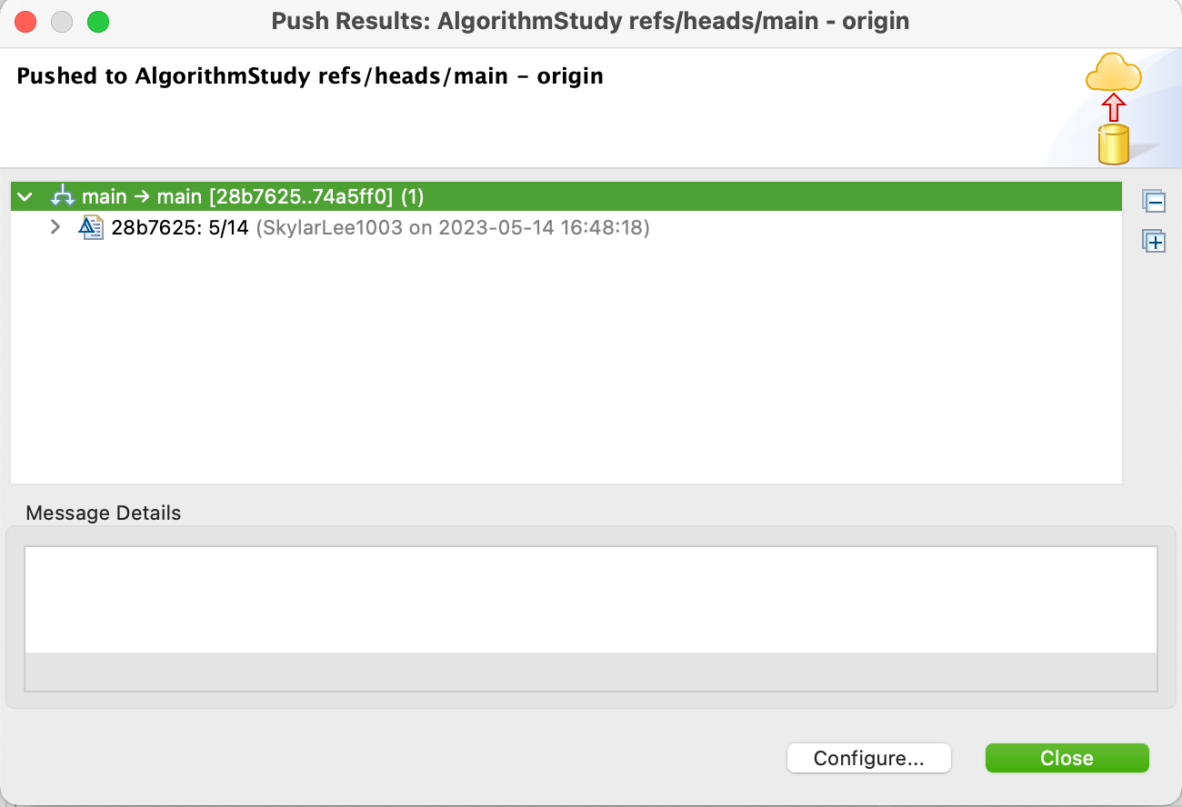 아래와 같은 창이 뜨면 성공이다~~~!! 다음에 기회가 된다면 Git을 하며 발생하는 commit error에 대해서 가져오겠다.