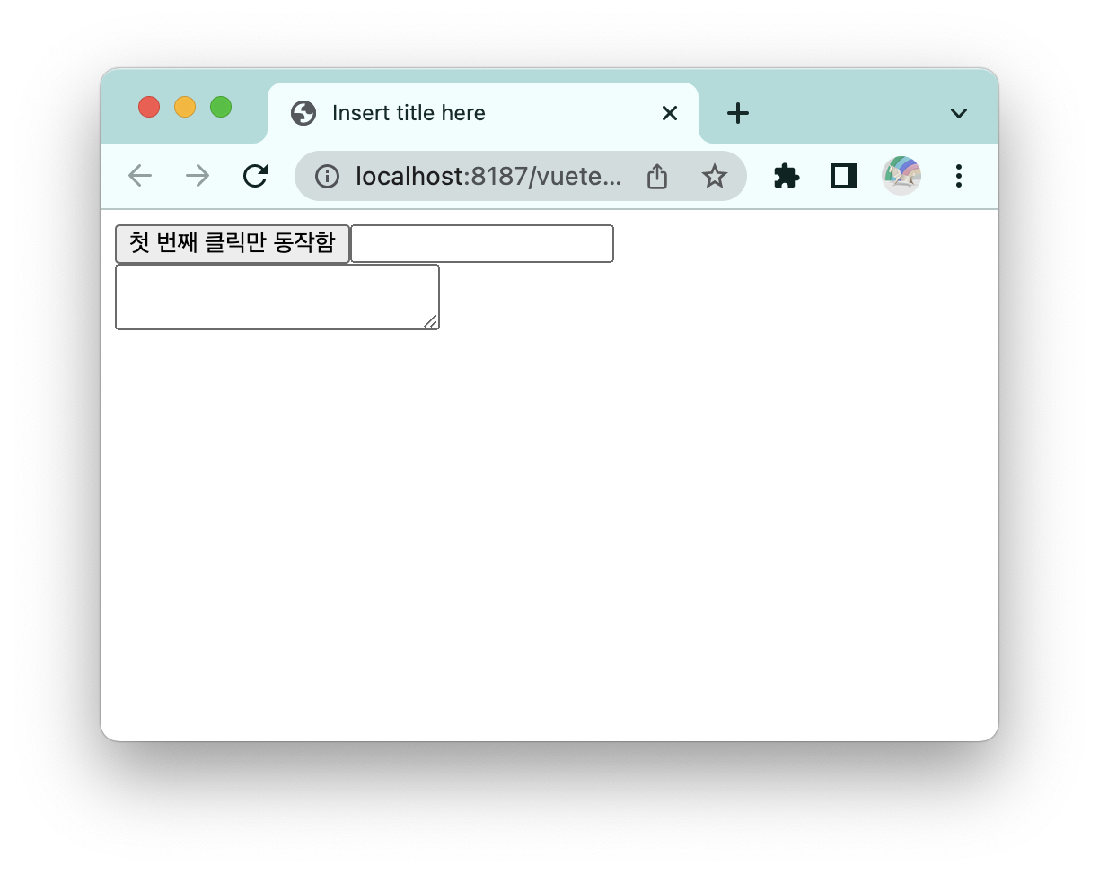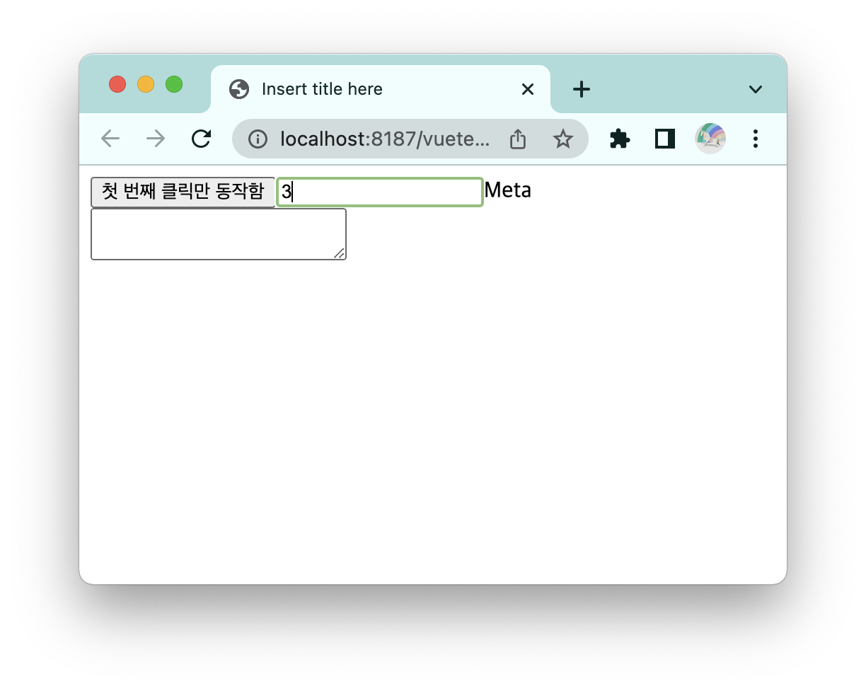<button v-on:click.once="a">첫 번째 클릭만 동작함</button>
