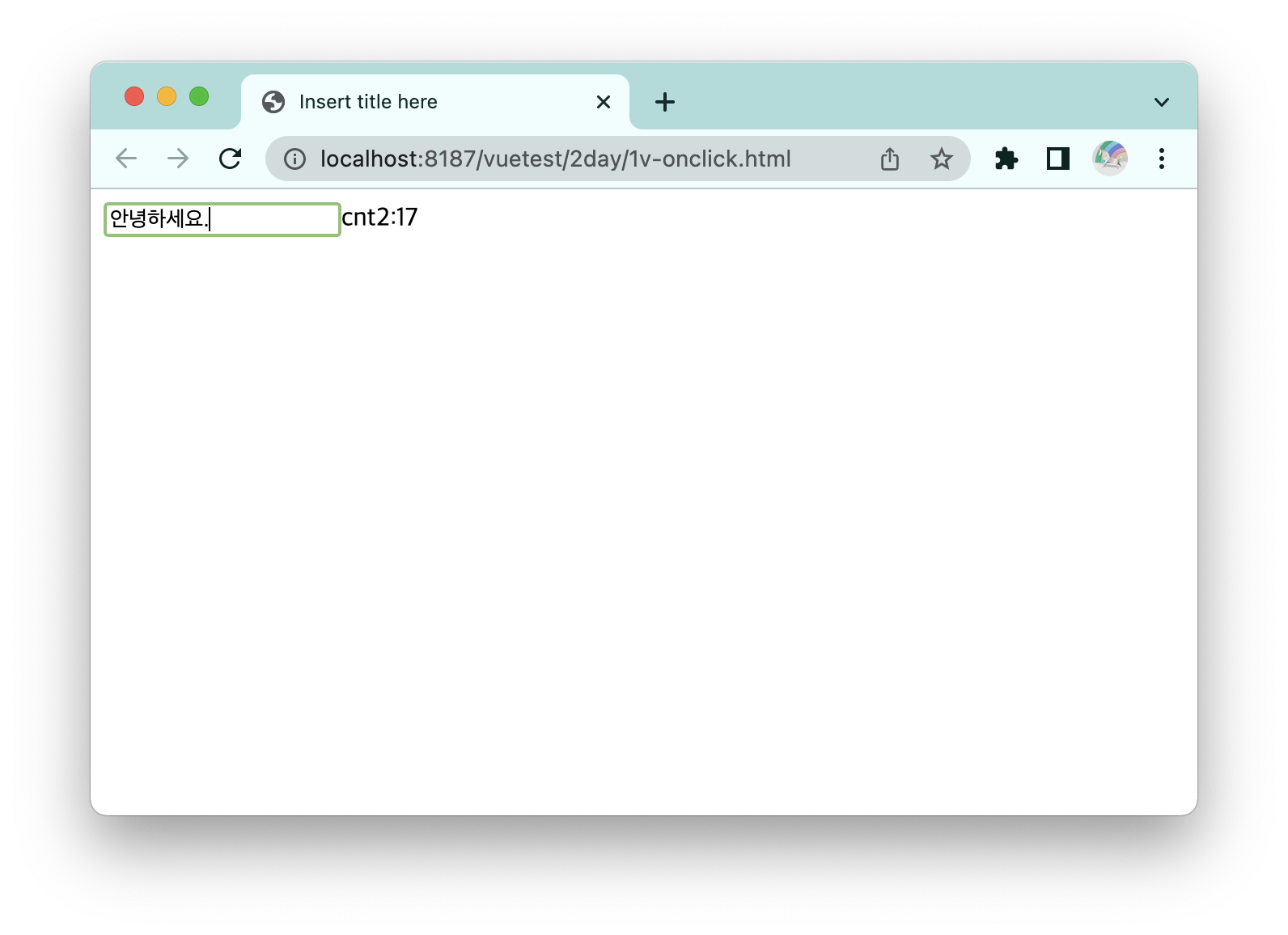 <input type="text" v-on:input="cnt2++" placeholder="키를 입력하시오">cnt2:{{cnt2}}<br/>