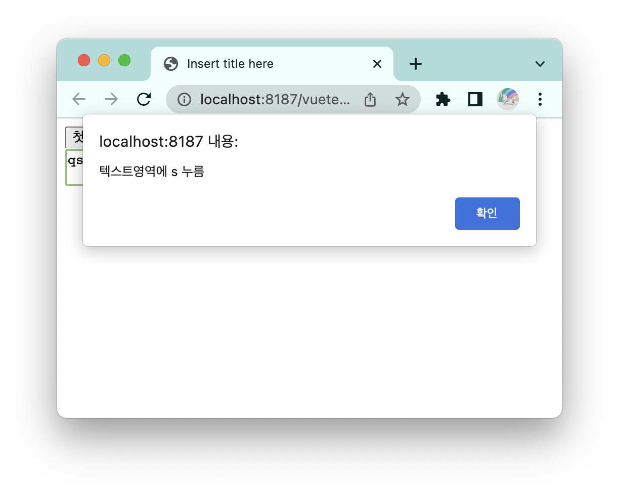 alert('텍스트영역에 s 누름'); //keyup.s 가 키 s 를 눌렀다 떼면 이벤트 발생