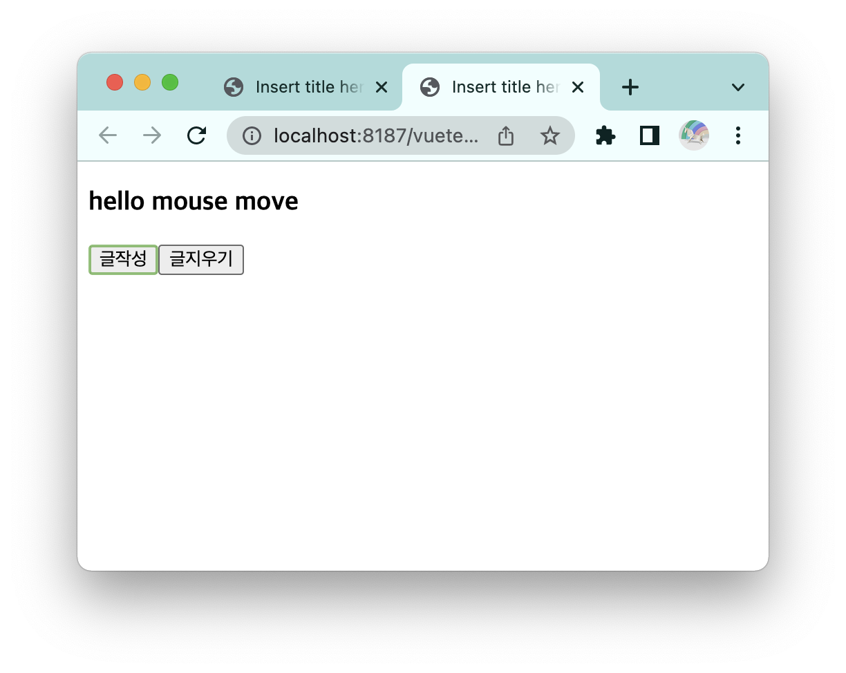 <button v-on:click="a">글작성</button><button v-on:click="b">글지우기</button><br/>