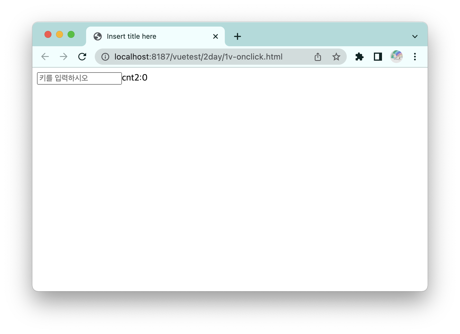 <input type="text" v-on:input="cnt2++" placeholder="키를 입력하시오">cnt2:{{cnt2}}<br/>
