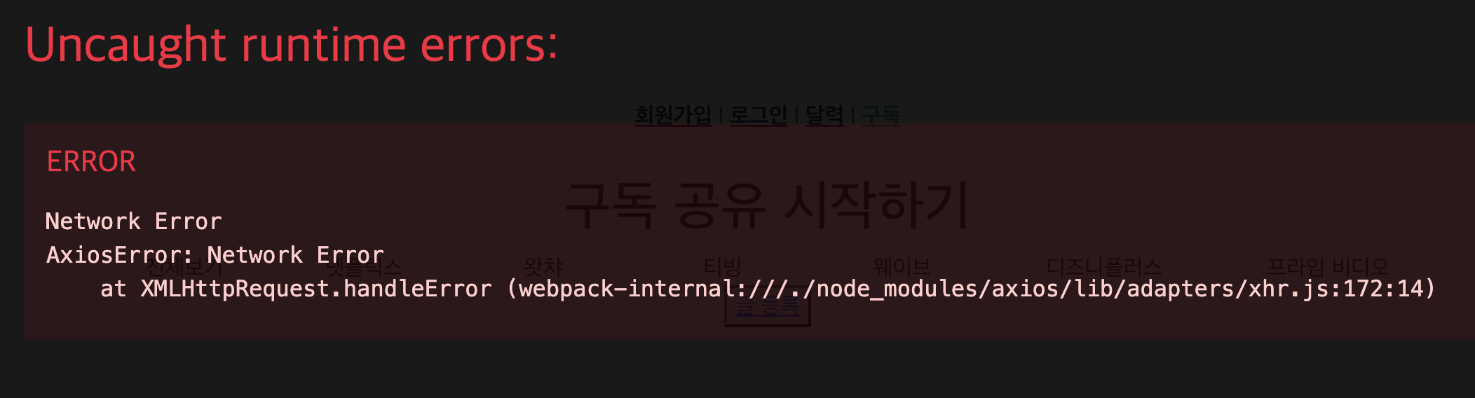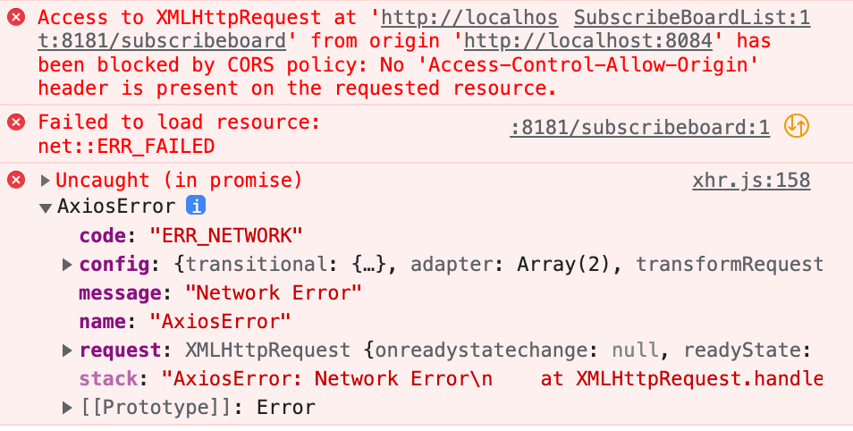 위 블로그를 따라 CORS 에러를 해결해주니 아래와 같은 오류가 발생하였다.
