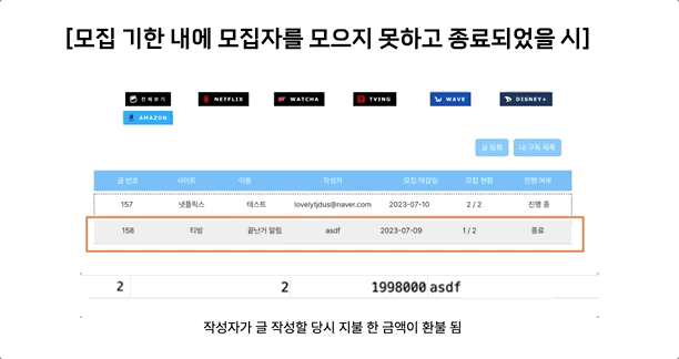 | 구독 공유 모집 서비스 | 구독 글 작성 ➡️ 자동으로 인당 금액 계산 ➡️ 자동출금 | ||