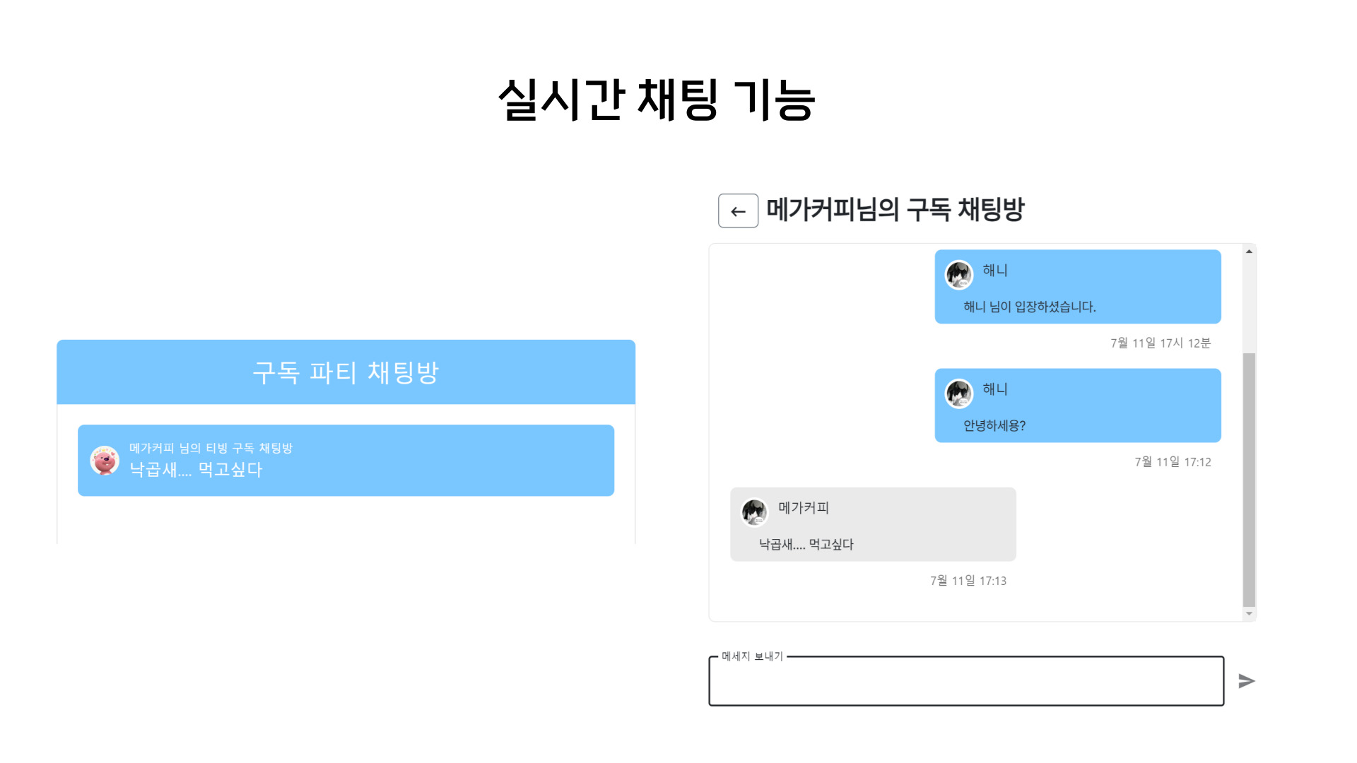 | 채팅 서비스 | 진행중인 구독에 대해 참여자끼리 채팅 기능 제공 | ||