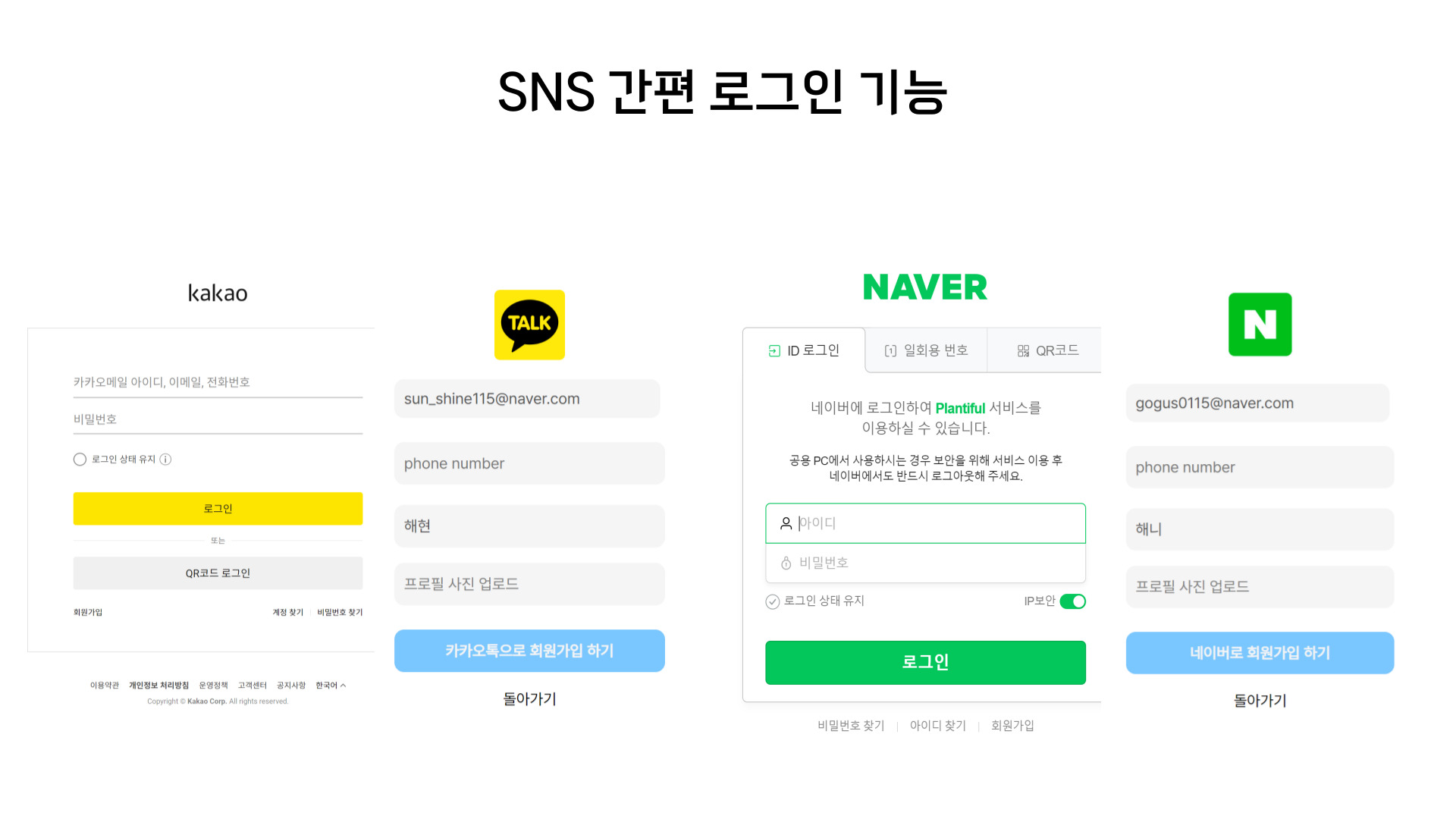 | 카카오/네이버 로그인 기능 |