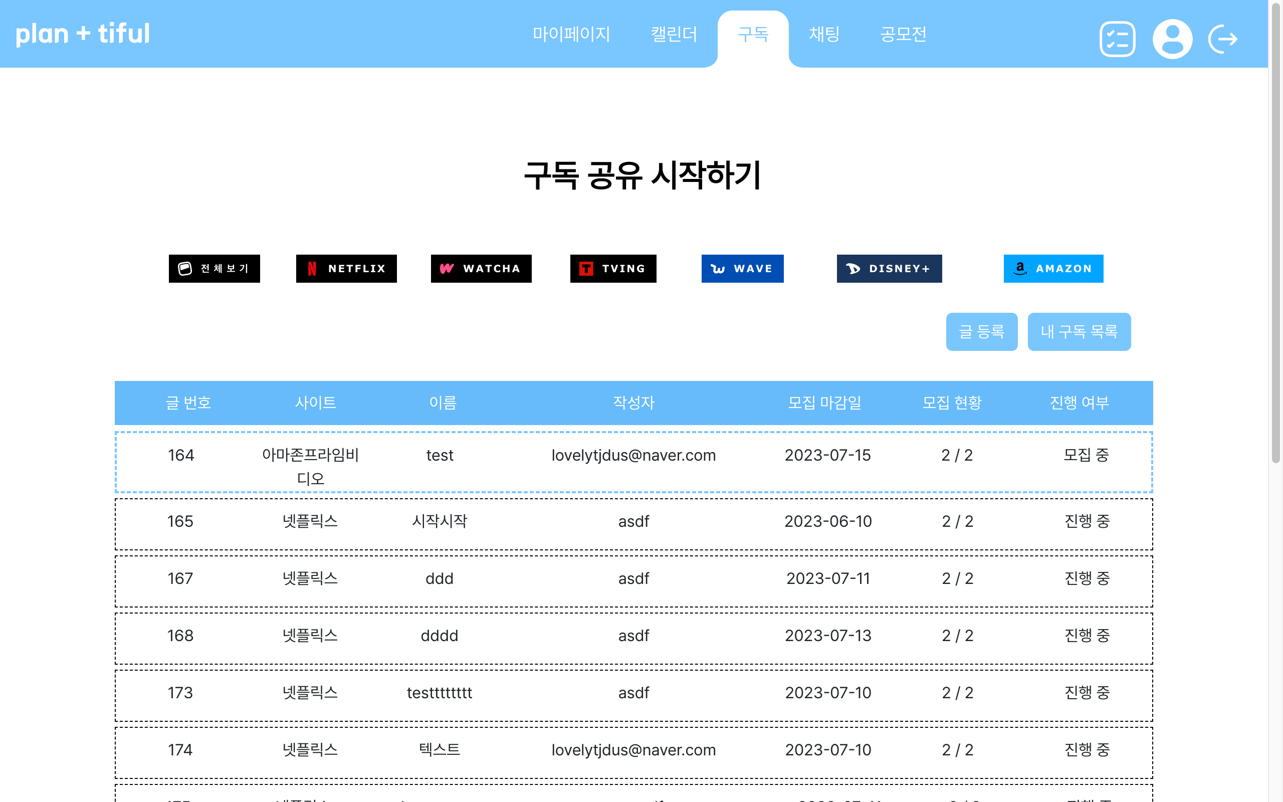 - 구독 공유 시작하기 (모집 글 리스트)