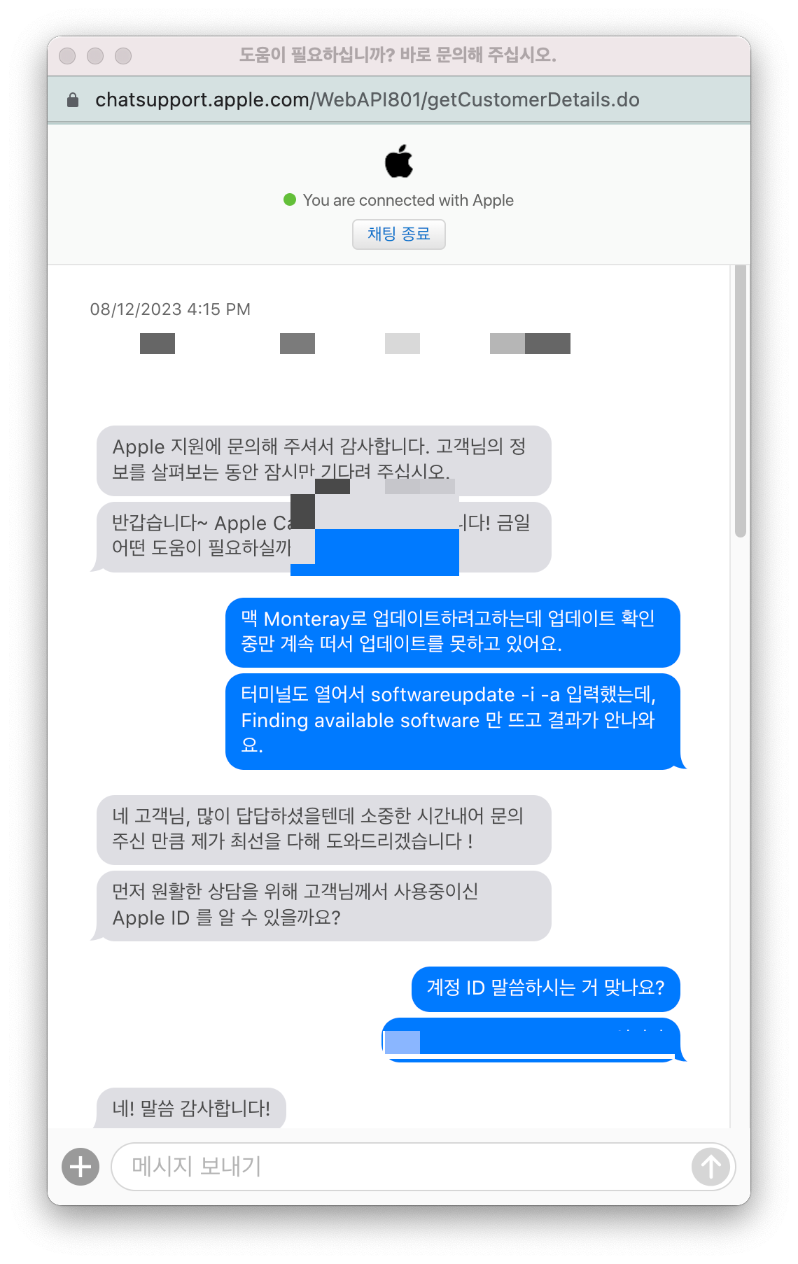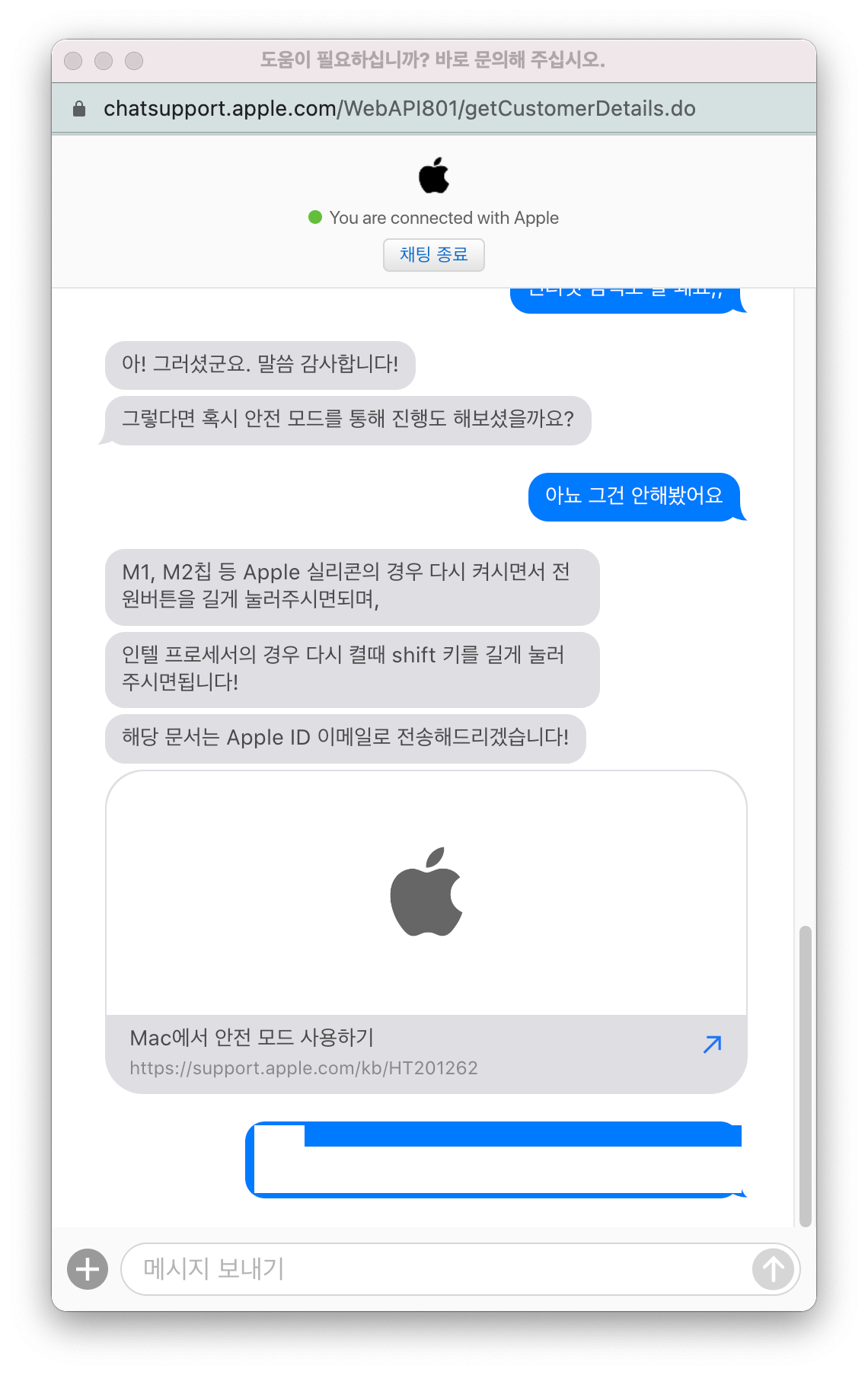 아래 케이스 선택 후, 채팅하기로 연락했는데 바로 연락됐다. 상담사분도 찾아보느라 좀 오래걸리는지 답장 텀은 약간 아주 약간 길긴하다...