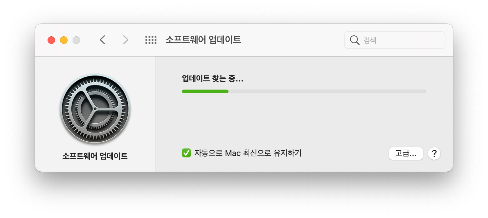 근데 막상 업데이트를 하려고 하니, 소프트웨어 업데이트 확인중 무한로딩이 뜨는거 아닌가. 사실 업데이트를 계속 안해도 됐지만, 굿노트를 맥북에서 정상적으로 사용하기 위해서는 업데이트를 무조건 해야했다.