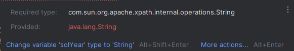 String cannot be applied to com.org.apache.xpath.internal.operations.String
