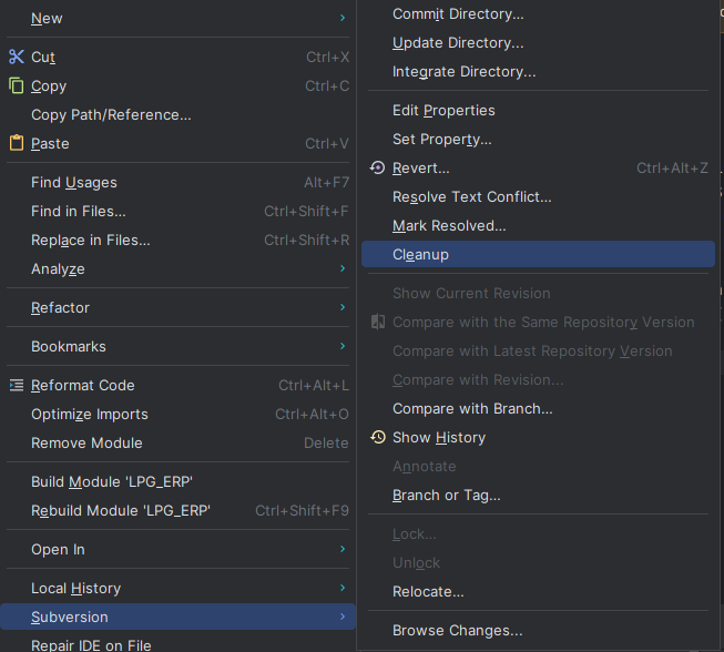 추가적으로, 내 프로젝트의 경우 넥사크로 파일을 열어놓는다거나 그러면 svn error 가 발생한다. 때문에 화면을 전부 꺼주고 cleanup 해주면 된다.