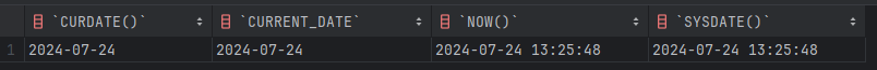 SYSDATE() 는 날짜 조회를 기준으로 날짜 및 시간을 반환한다. 호출할 때마다 현재 시각을 반영하기 때문에, 같은 트랜잭션 내에서 여러번 호출할 경우 각 호출 시점의 현재 시간이 다를 수 있다.