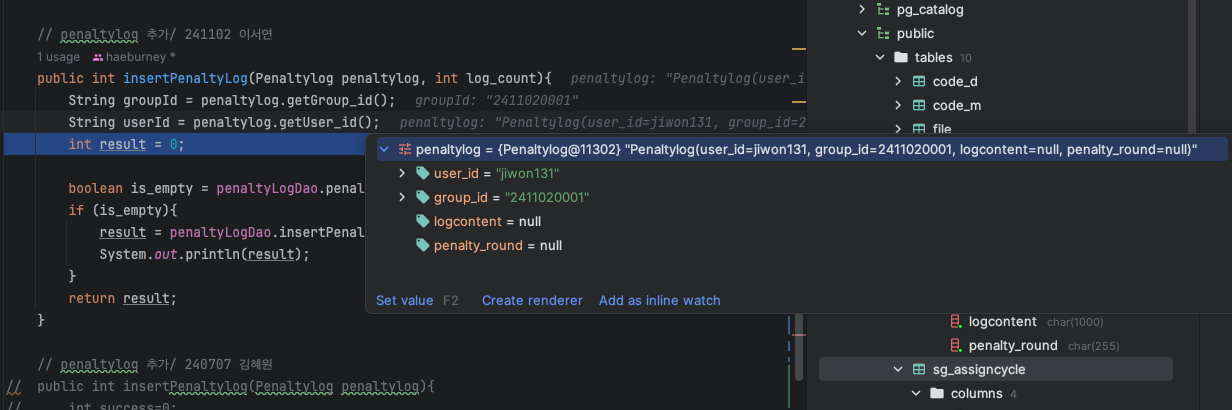 INSERT INTO penaltylog