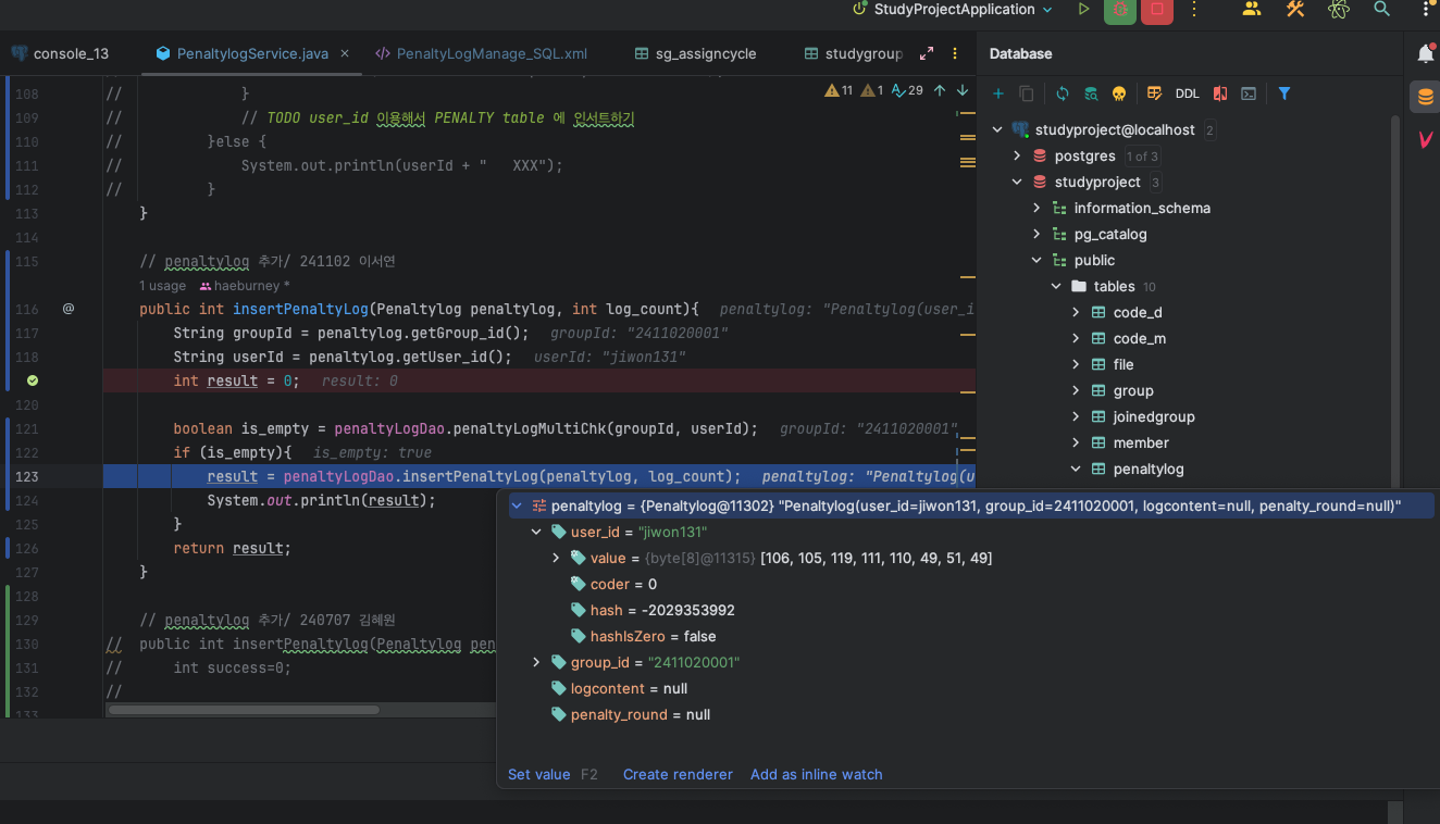 Spring Boot, Mybatis, PostgreSQL 을 사용하여 프로젝트를 구현하고 있다.