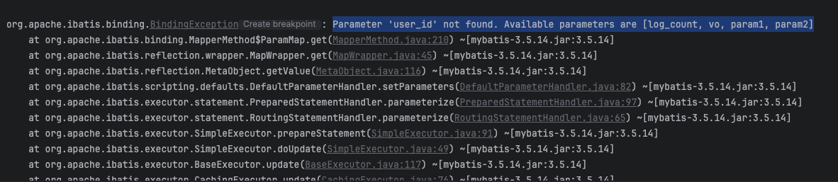 그런데 이번에 insert 를 구현하는데 Parameter 'user_id' not found. Available parameters are [ ... ] 에러가 발생하는 거다.