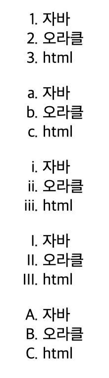 순서 있는 출력의 기본값은 숫자이다.