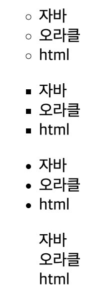 순서 없는 출력의 기본 값은 ● (disc) 모양이다.