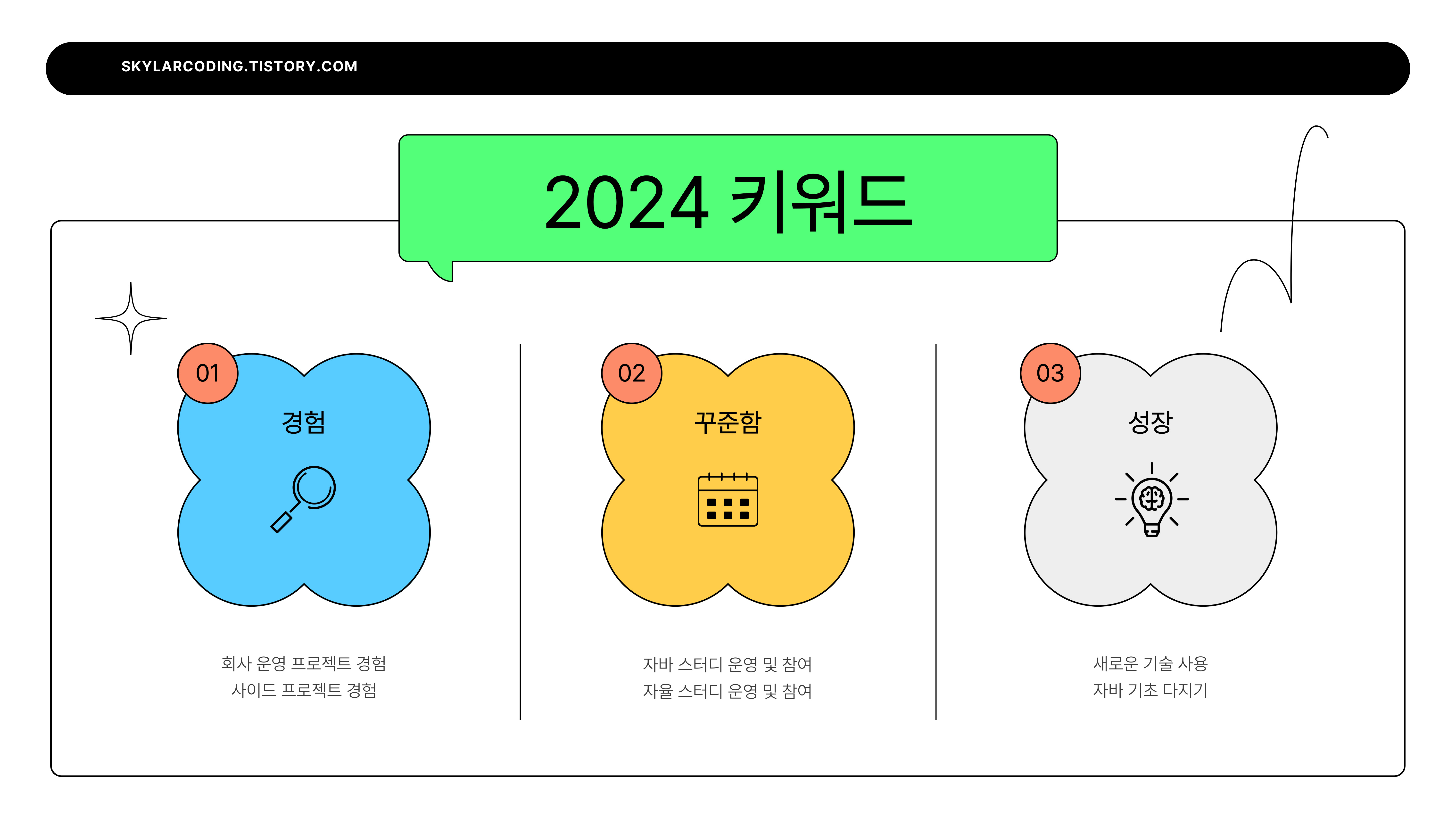 2024년의 베스트 키워드를 꼽자면, 경험이 될 것 같습니다. 사이드 프로젝트 경험, 회사 운영 프로젝트 경험이 2024년을 통해 얻은 큰 자산이 되었습니다.