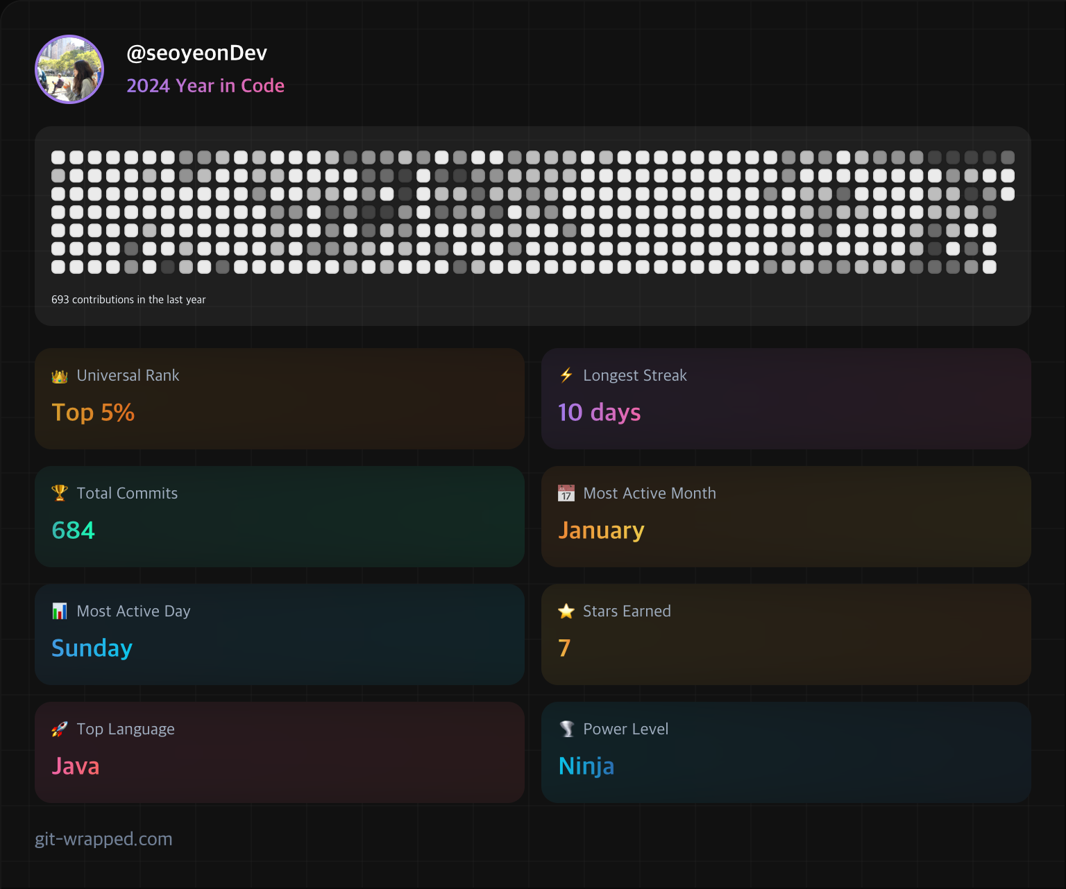 2024년 한 해의 타임라인 입니다. 프로젝트에 어느정도 적응하고 안정된 3월 경부터 자바 스터디 및 사이드 프로젝트를 시작하였습니다. 사이드 프로젝트는 현재 진행중입니다.