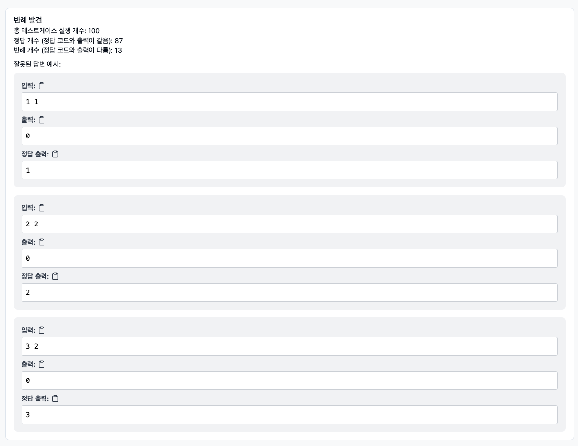 총 385개의 백준 문제에 대해 반례를 찾을 수 있습니다. 찾고 있는 문제가 없나요?