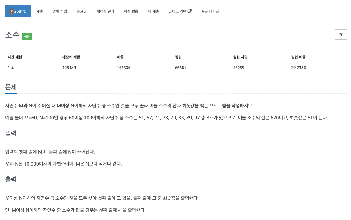 이 문제가 어려울 경우 1978 소수찾기 문제 먼저 풀어보는 것을 추천.