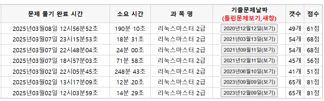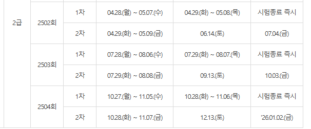 남은 2025년 리눅스 마스터 일정은 아래와 같다.
