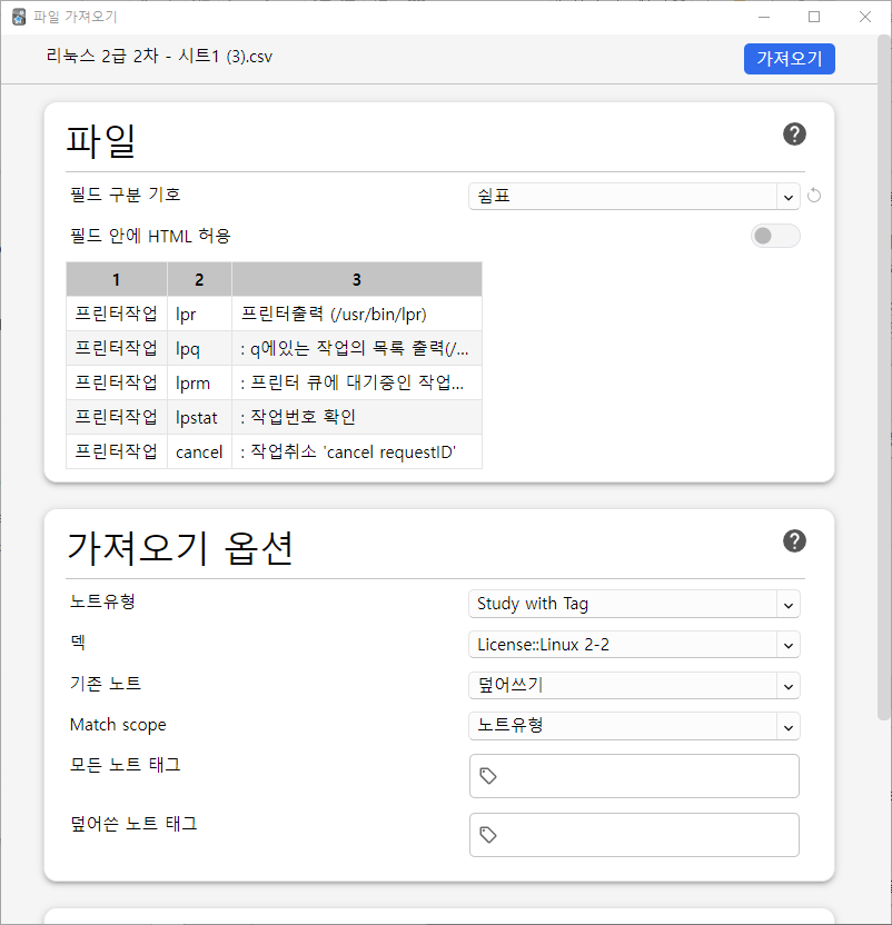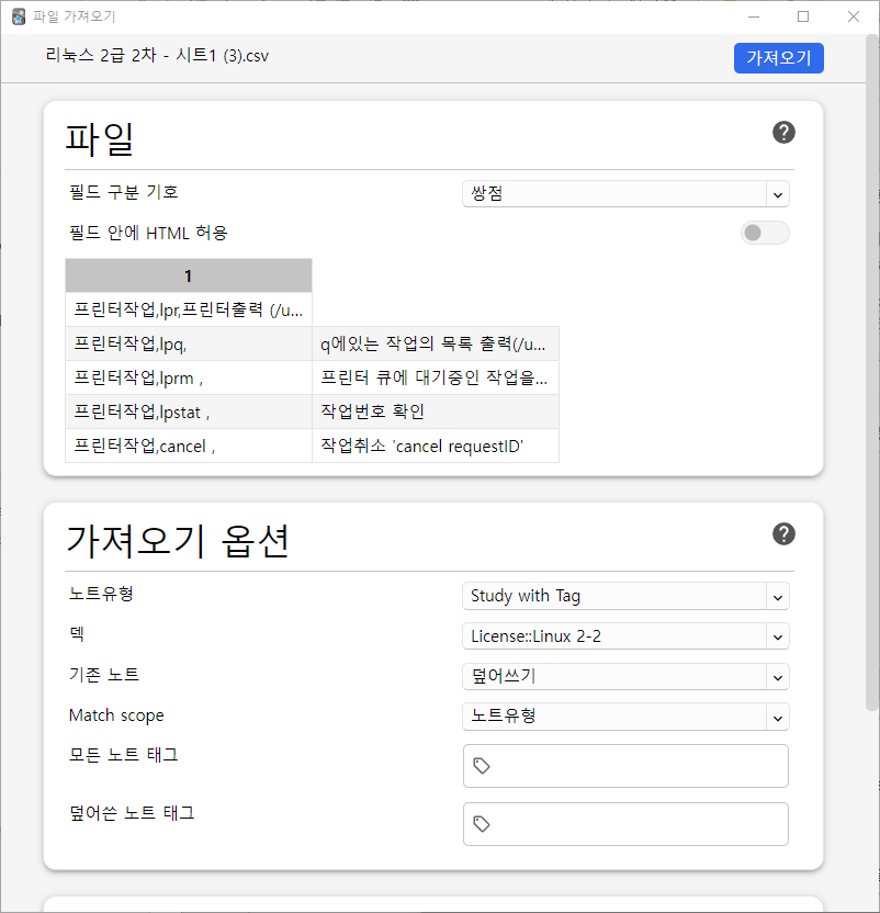 2. 가져오기 옵션 확인