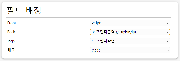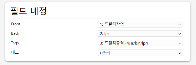 가장 하단의 필드가 의도한 필드가 맞는지 확인합니다. 저의 경우, 프린터작업이 추가로 입력한 필드인 Tags 이기 때문에 아래와 같이 변경하였습니다.