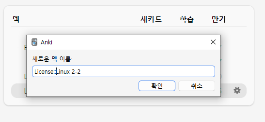 덱 만들기를 통해 덱을 추가해줍니다.