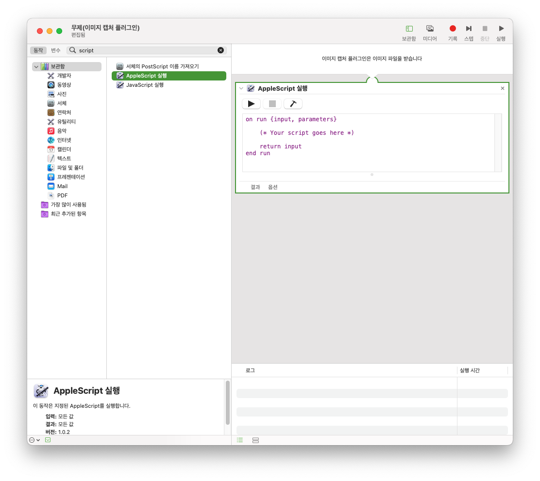 3. applescript 선택하여 작업에 넣기