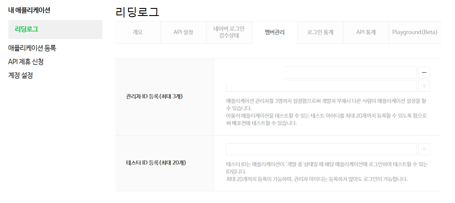 3. 내 어플리케이션에서 팀원의 관리자 ID 및 테스터 ID 등록
