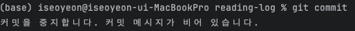 * :qa 만 입력하여 화면을 나올 경우 커밋 메세지가 비어 커밋이 중단된다.