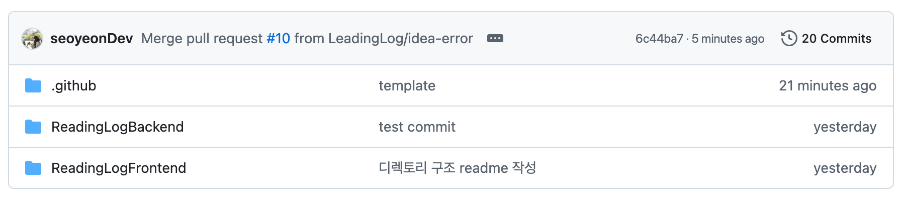 따로 브랜치를 빼서 작업한거라, 나오는 Pull Request 를 생성하고 merge 를 진행해주면 아래와 같이 올라갔단 .idea 파일이 삭제된다 !
