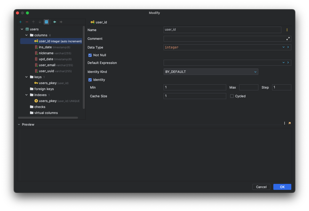 Not null 은 GeneratedValue 를 설정해주면 된다. 그런데 위와 같이 설정했는데도, insert 를 실행할 때 아래와 같은 에러가 발생했다.