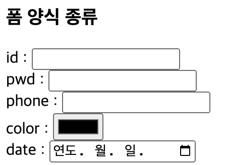 <input type = "submit" value = "데이터전송"> <!-- 폼 제출 버튼 -->