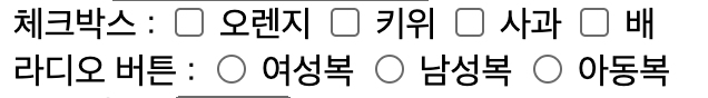 <input type = "checkbox" name = "ch" value = "3"> 사과