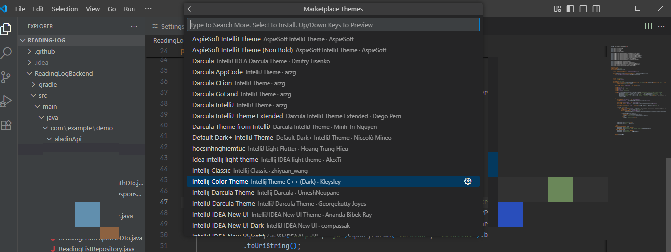vscode 를 사용할 일이 생겼다. 원래 인텔리제이를 사용했던 터라, visual studio code 테마 및 폰트가 너무 복잡하고 .. 어지럽고 눈이 아팠다. 인텔리제이 스타일로 변경하는 방법에 대해 작성하고자 한다.