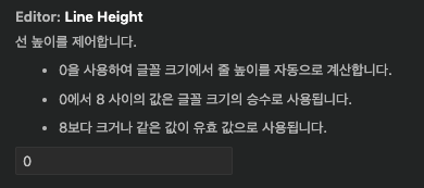 1. 위치는 정확하게 모르겠는데, Line Height 를 검색하면 아래와 같이 나온다.