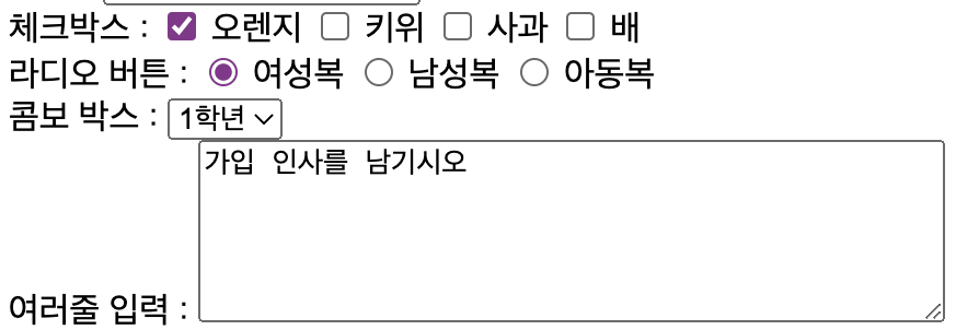 <input type = "checkbox" name = "ch" value = "3"> 사과