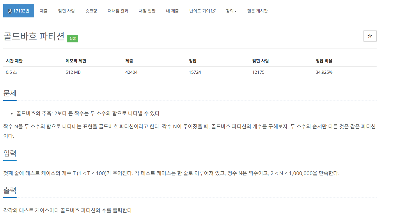 - 소수끼리의 합 구할 때, 이중 for 문이 아닌 n = i + (n - i) 공식 이용하여 시간 복잡도 개선