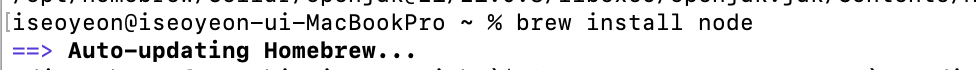 brew install node 를 터미널에 입력하면 아래와 같이 자동으로 node 가 설치되기 시작한다.