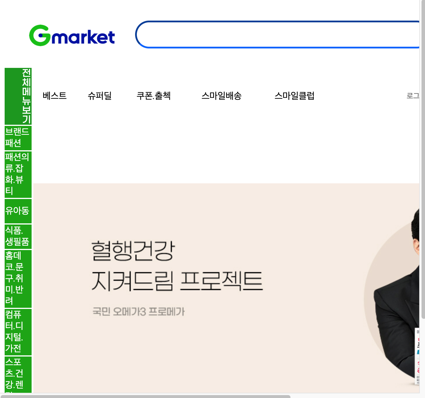 어찌저찌 G마켓 로고와 검색창, 전체 메뉴보기는 대충 구현했는데 전체 메뉴보기 옆에 있어야 할 여러 항목이 올라가지 않는 것이다.