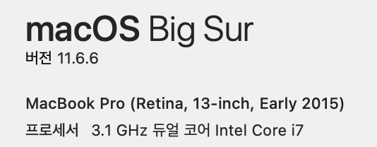 우선 내 맥북 사양이다. Intel Core 를 사용하고 있으니 이에 맞춰 Docker을 다운받아준다. 만약 애플 M1 칩을 사용하고 있다면 사과모양 Apple chip 을 다운받아주면 될 것이다.