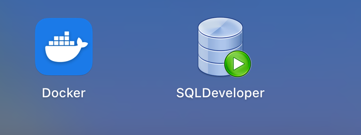 오라클은 mac OS에서 안 돌아가기 때문에 도커를 사용해서 써야 합니다. 도커에 oracle을 설치하는 방법은 다른 곳에 잘 나와있으니 찾아보면 됩니다. 오라클 이미지를 잘 설치하였다면, docker run --n
