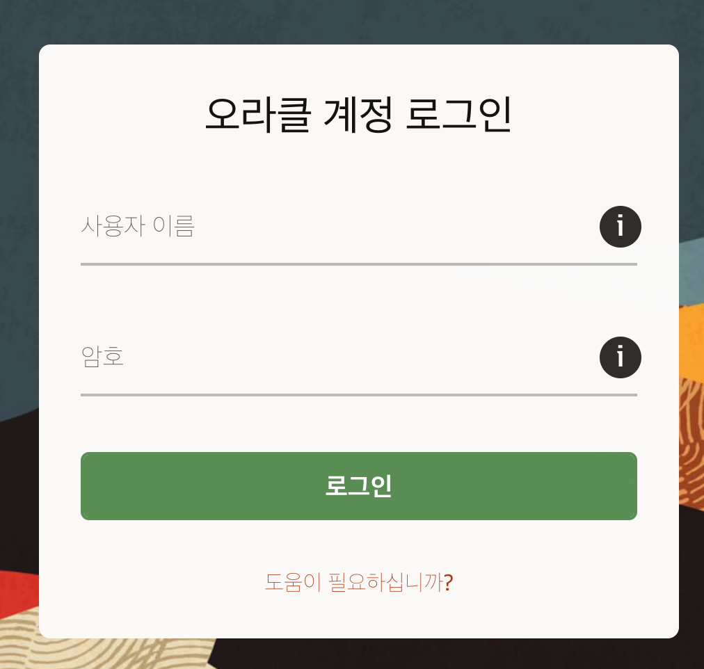 password 부분은 입력해도 화면이 안보이는게 정상이다. oracle 쳐주고 엔터 누르면 된다.