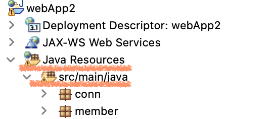 Java Resources - src/main/java 에 conn(모르겠으면 아래 링크 참고) 과 Java 폴더와 파일을 넣어 패키지를 생성해준다.