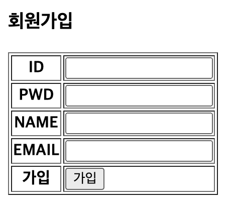 <tr><th> 가입 </th><td><input type = "submit" value = "가입"></td></tr>