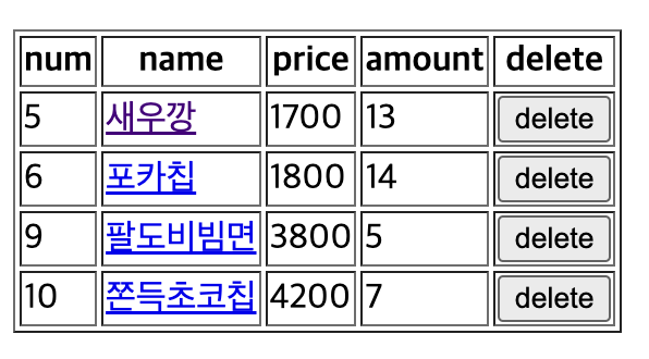 전체 목록 보기에서 바로 delete 버튼을 테이블(table)에 포함해준다.