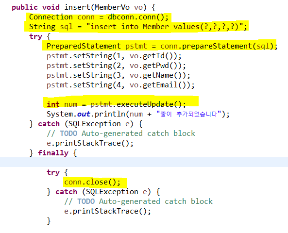 pstmt.setInt(1, num); //SQL 쿼리문의 '?'에 매개변수 'num' 값