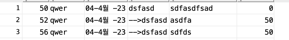 Oracle DB에 댓글은 이와 같은 형태로 나타난다.
